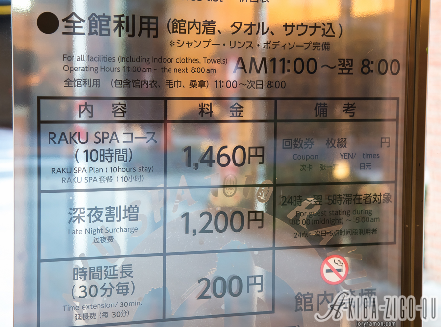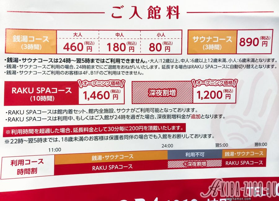 (※深夜割増は1,200円/銭湯・サウナコースは24時~翌5時利用不可)