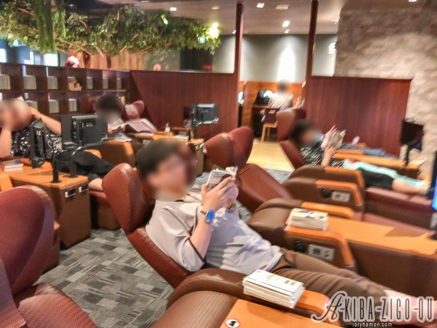 休憩エリアにはコーヒーマシーンや自販機もあるので、リクライニングチェアーでうっかりスーパードライを飲みながらスポーツ中継を見だしてしまった。