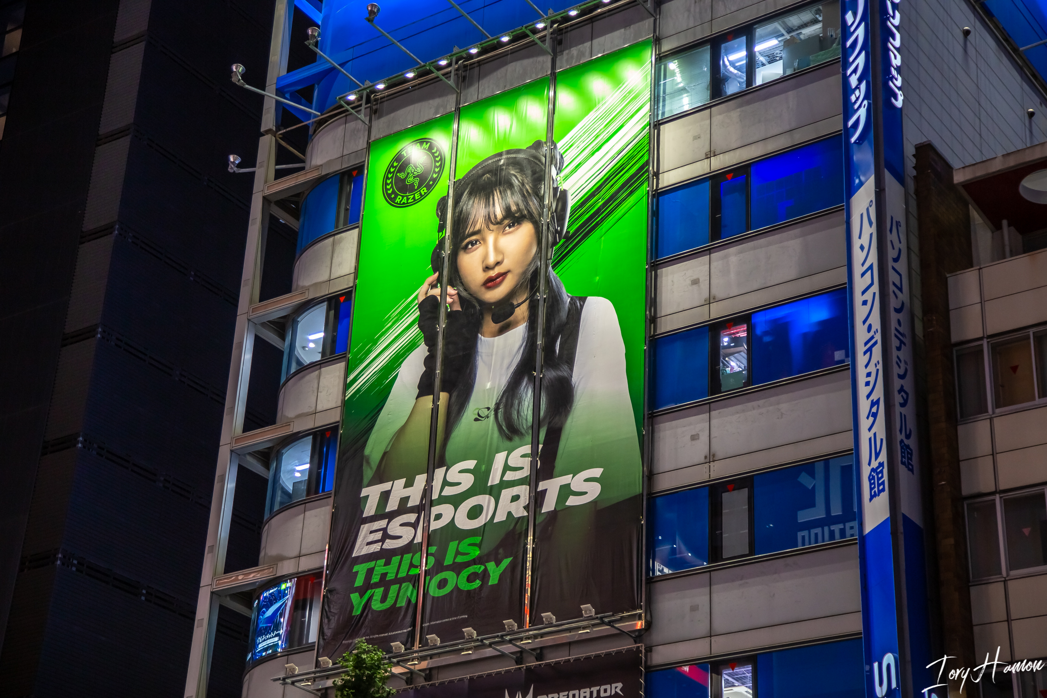何年もずっと二次オタ広告が張られてたソフマップ、PCデジタル館になって実写モデルの広告になったら不思議と昔のサイバーパンク映画の街並みっぽさが出てきた pic.twitter.com/V53awr6voJ