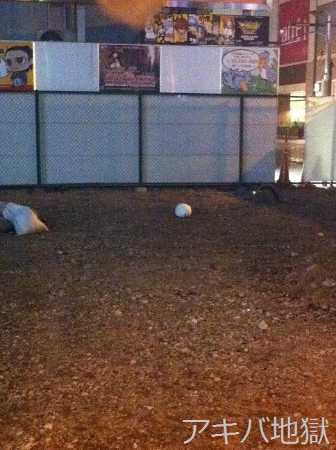 ・早朝のアキバTLを見ると「駅前の元駐車場に「(´・ω・`)ショボーン」と思われるクッションが放置されてる」とのことなので見に行ってみた。