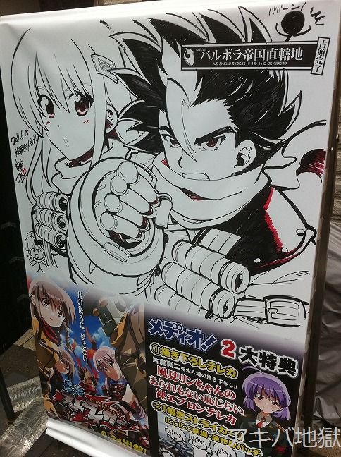 ●とらA前看板「コミックマーケット80カタログ」とらのあな限定特典は「有葉先生(冊子版)」「ブリキ先生(ROM版)」「みささぎ楓先生(女性向)」特製バック付で予約受付中、とのこと