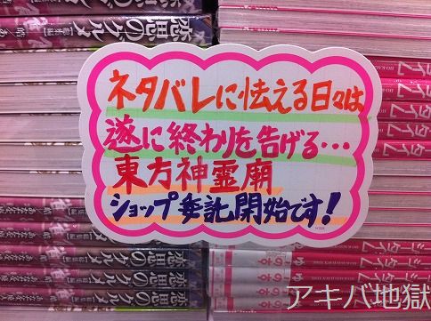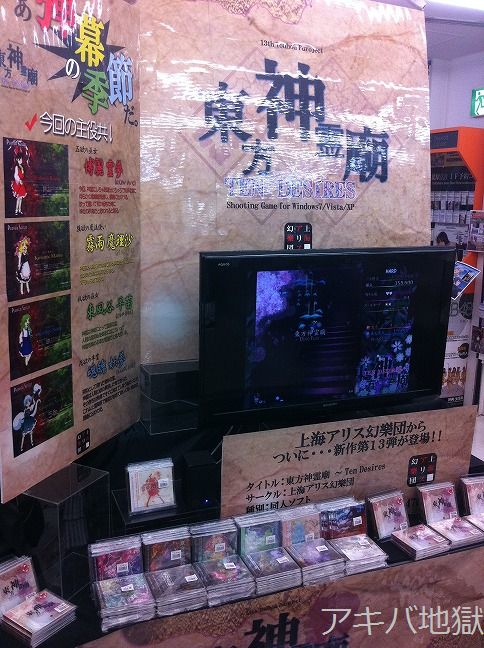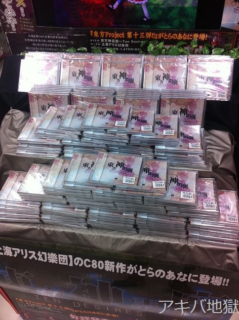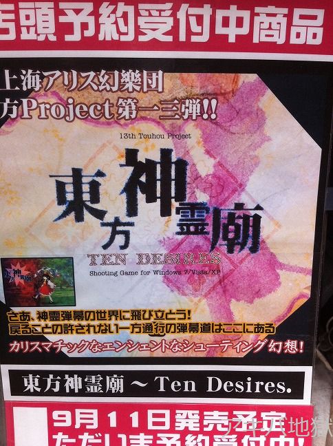 9月11日、サークル上海アリス幻樂団がコミケ80で頒布した東方Project第十三弾「東方神霊廟~TEN DESIRES」が秋葉原の取扱各店に入荷、販売が開始された。D-STAGE秋葉原店では深夜0時からの深夜販売もあったり。