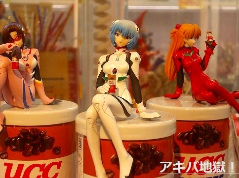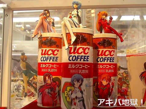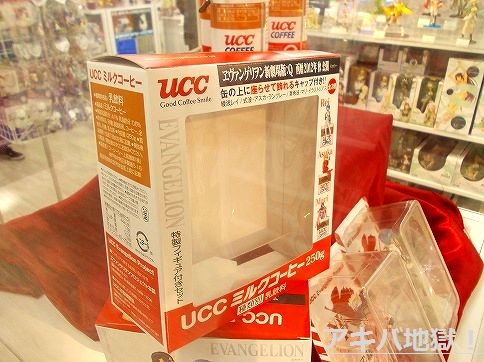 ▼コトブキヤ秋葉原館でエヴァ「UCCミルクコーヒー250g特製フィギュア付きセット」を先行販売