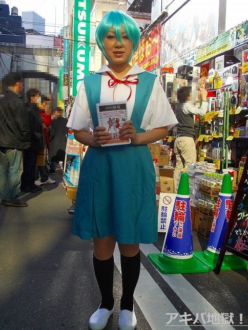 ▼店前では綾波コスのおねーさんがビラ配りしてた
