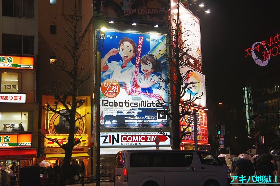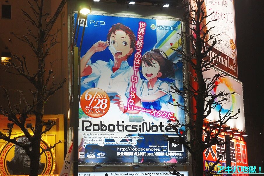 5pb.より6月28日発売予定の『ROBOTICS;NOTES』PS3/XBOX360【AA】ARマーカー連動の広告がCOMIC ZINのビル看板に16日から登場してる。