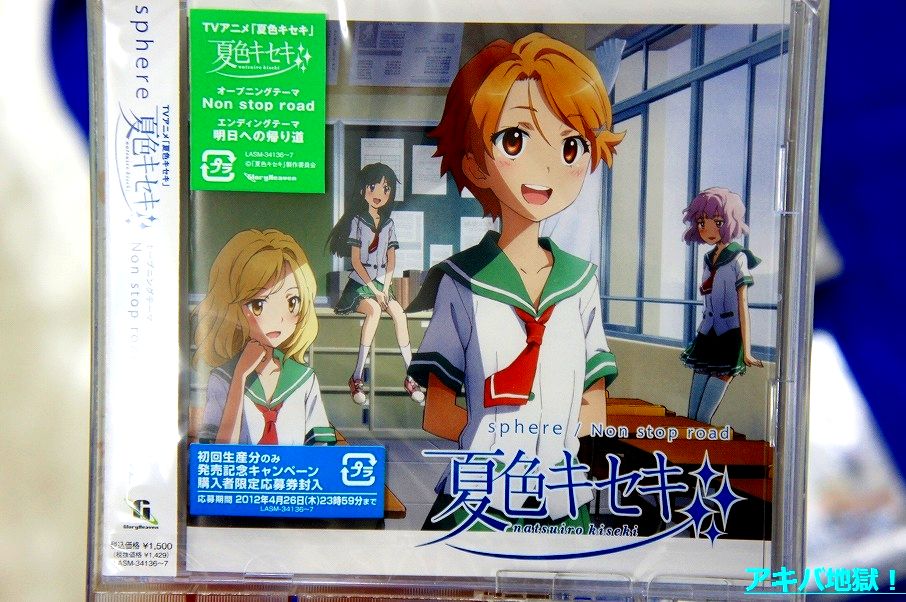 TVアニメ『夏色キセキ』オープニング/エンディングテーマ、スフィアの『Non stop road/明日への帰り道』通常盤 / 夏色盤 / 限定生産盤【AA】が24日に発売してる。アキバではスフィアのアドトレーラーなんかも登場してたり。