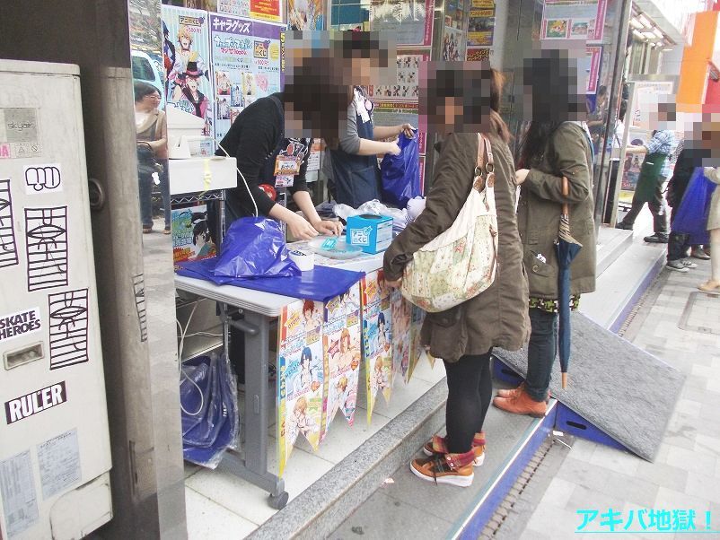 くじを引いてた女の子の中には、上位賞かお目当ての品を引いたのか「ひゃあぁあぉうあpaetgalgb*oa5x」という奇声や悦びの声をあげてる人なんかもいたり。アニメイトの店頭販売でここまでの行列を見ることは滅多にない。