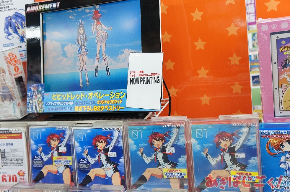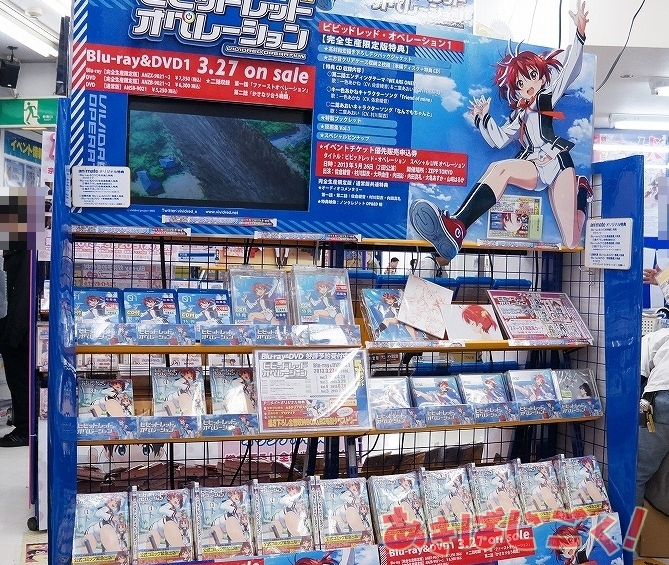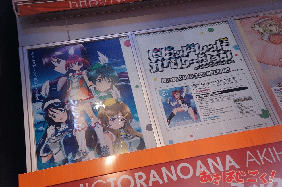 新作アニメ『ビビッドレッド・オペレーション』の特大パネル&ショーケース展示がアキバの店舗に登場!■関連リンク