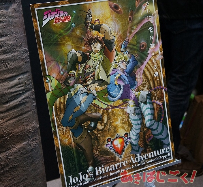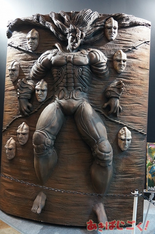 アニメコンテンツエキスポ2013のワーナーブースでは、「ジョジョの奇妙な冒険」の「柱の男」が出現し、多くの人がカメラを向けたりしてた。近づいても大丈夫。