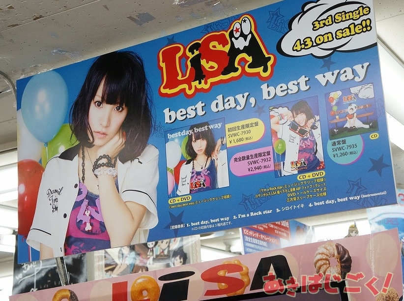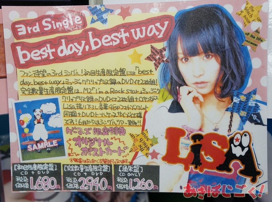 LiSAさんの3rdシングル「best day,best way」通常盤/初回生産限定盤/完全数量生産限定盤(AA)が2日に発売してる。