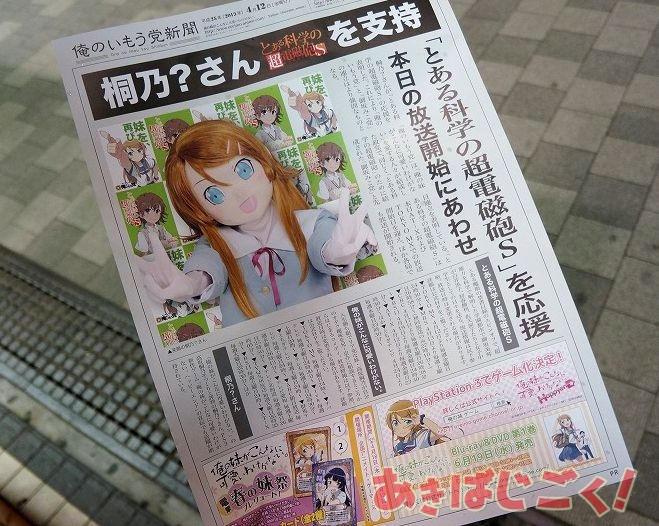 秋葉原ではゲーマーズ本店とアニメイト秋葉原に駆けつけたようで、“桐乃?”さん登場のほか、「俺のいもう党」から発行された(ということになってる)号外も配布してた。