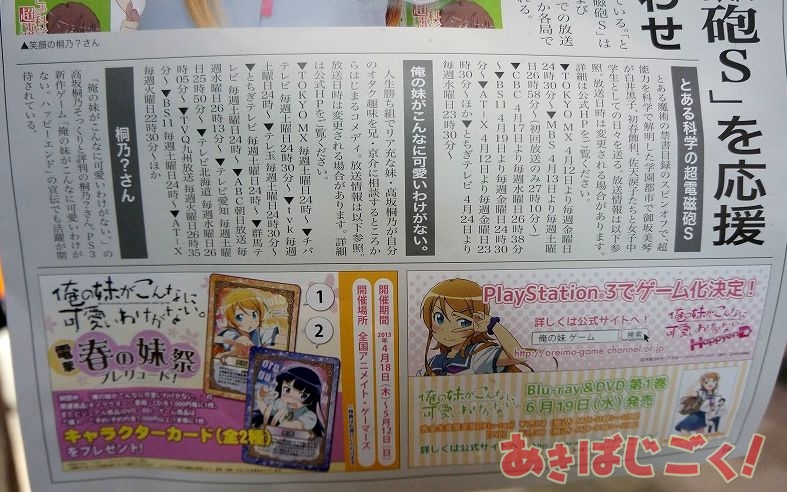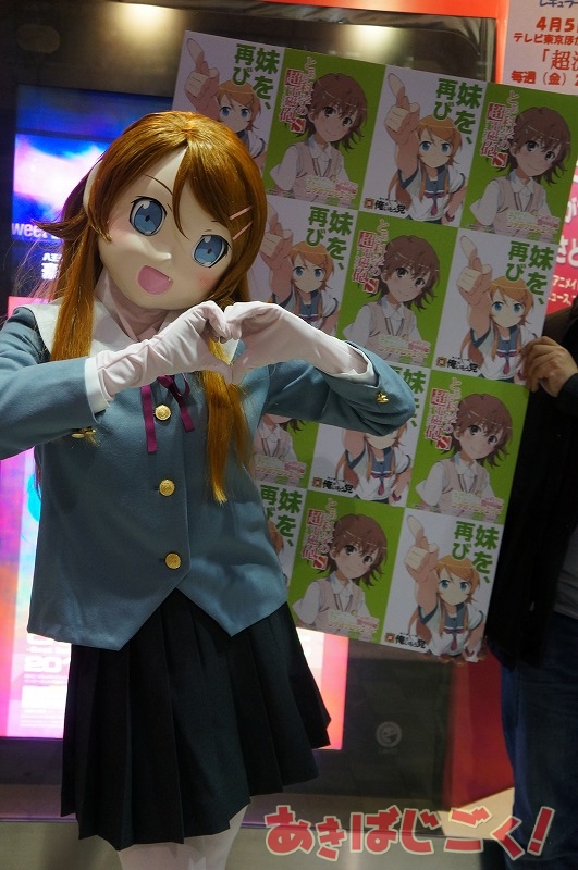 2期アニメ「とある科学の超電磁砲S」の本日12日の放送開始にあわせ、同じく2期アニメがスタートした「俺の妹がこんなに可愛いわけがない。」から“桐乃?”さんが秋葉原に宣伝しにやってきてた。