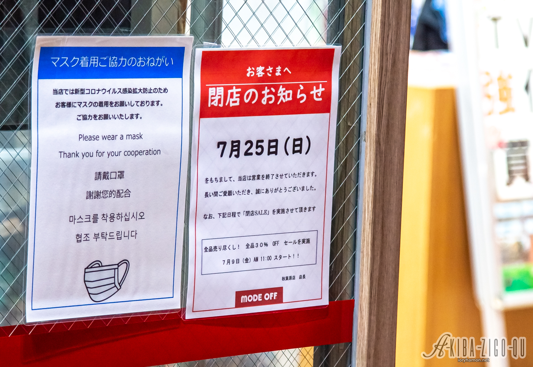 閉店するモードオフは7月9日より全品30%オフの売りつくしセールを実施するとのこと。