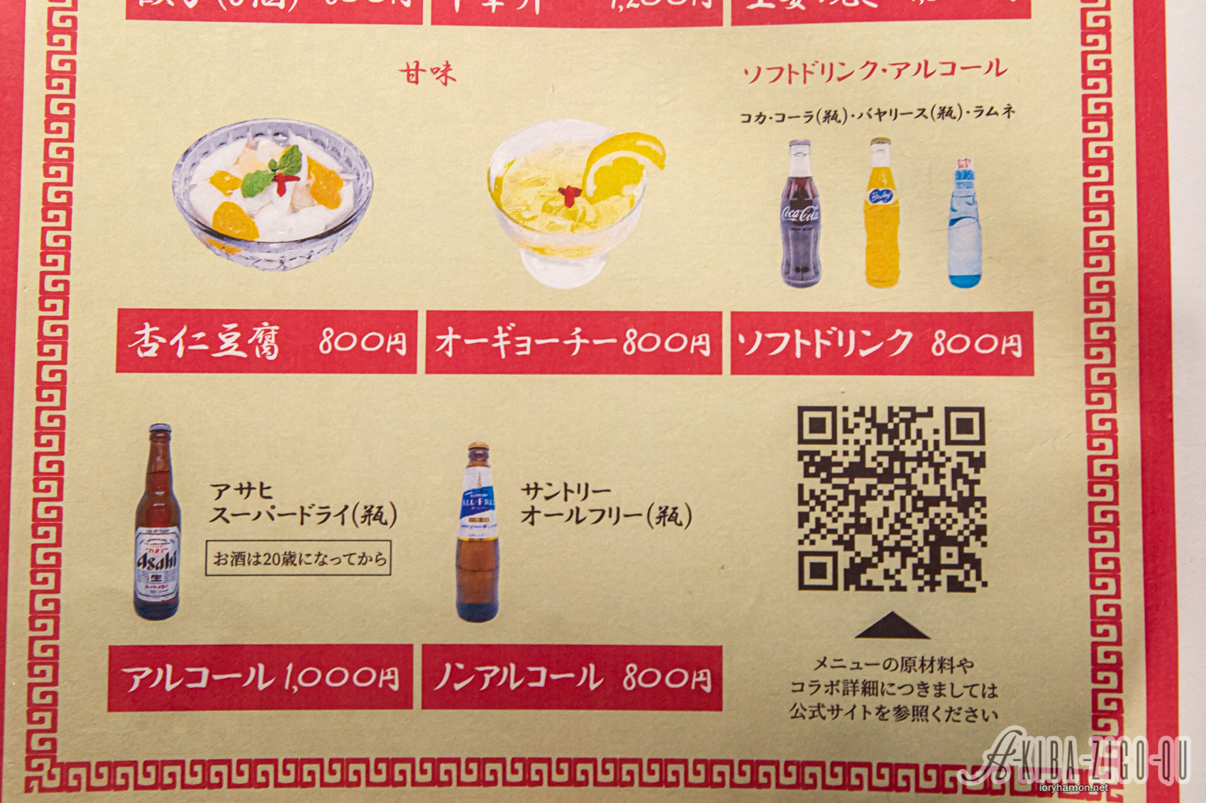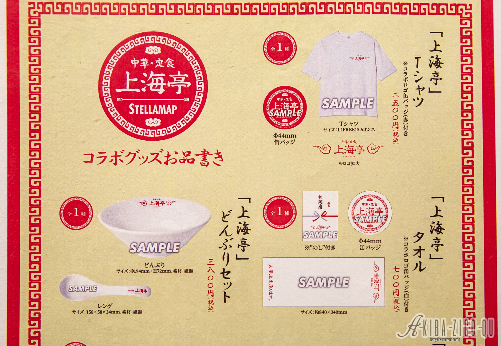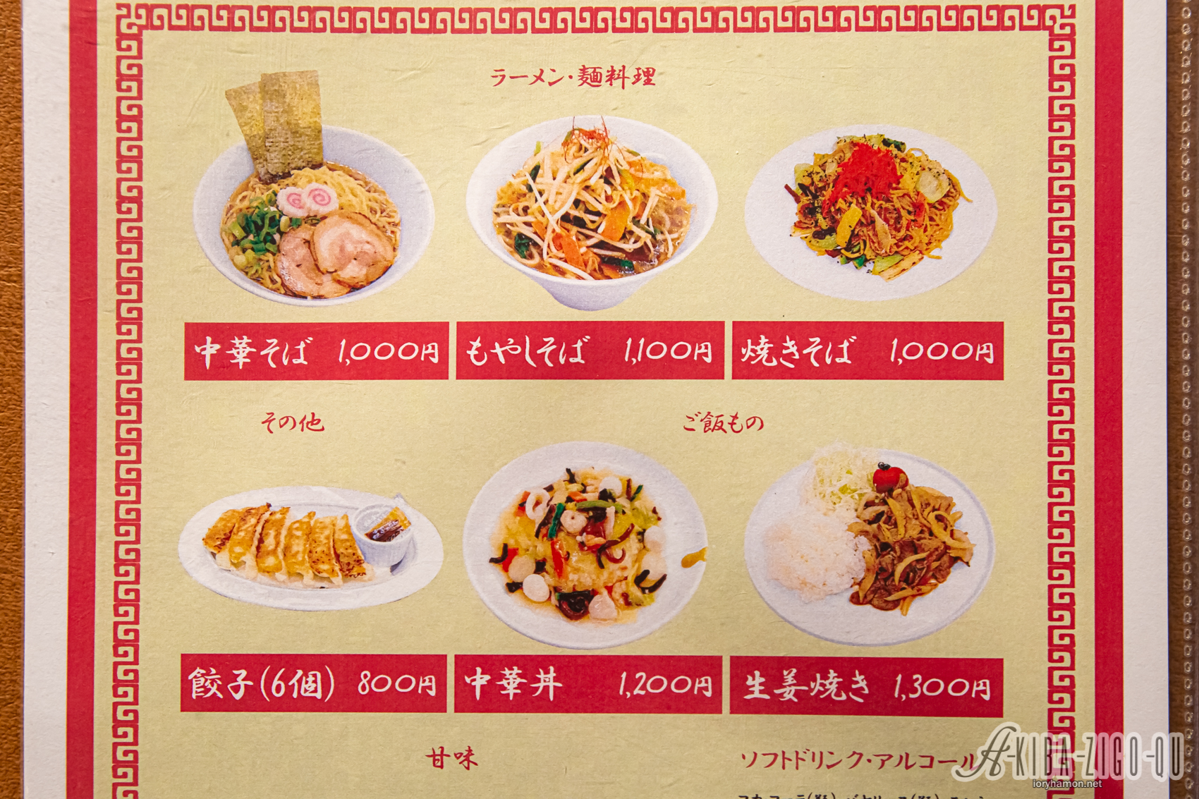 コラボメニューとして中華そば、もやしそば、餃子、焼きそば、中華丼、生姜焼き、杏仁豆腐、愛玉子(オーギョーチー)、