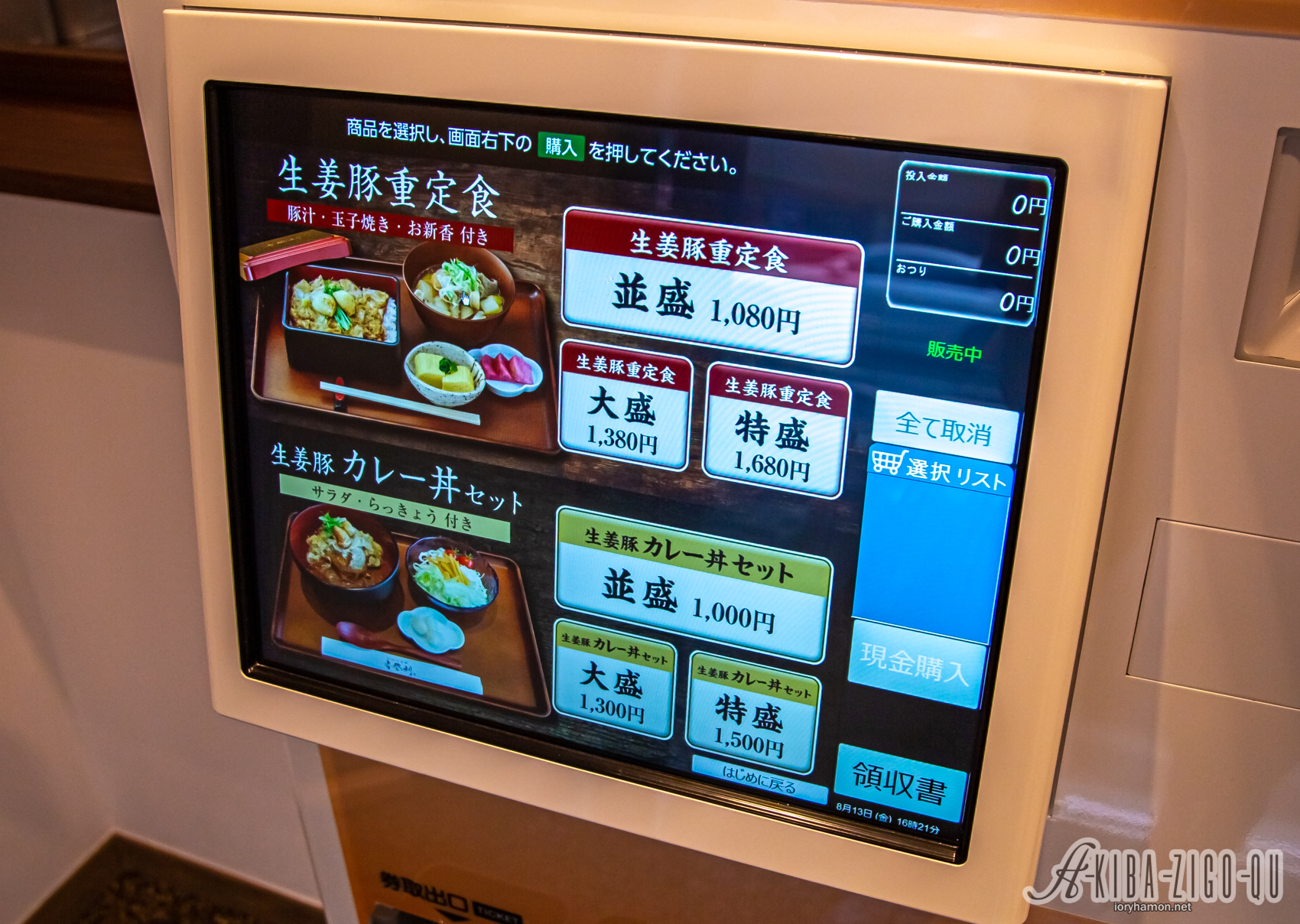 メニューは生姜豚重定食と生姜豚カレー丼セットのそれぞれ並・大盛・特盛でシンプルなラインナップ!