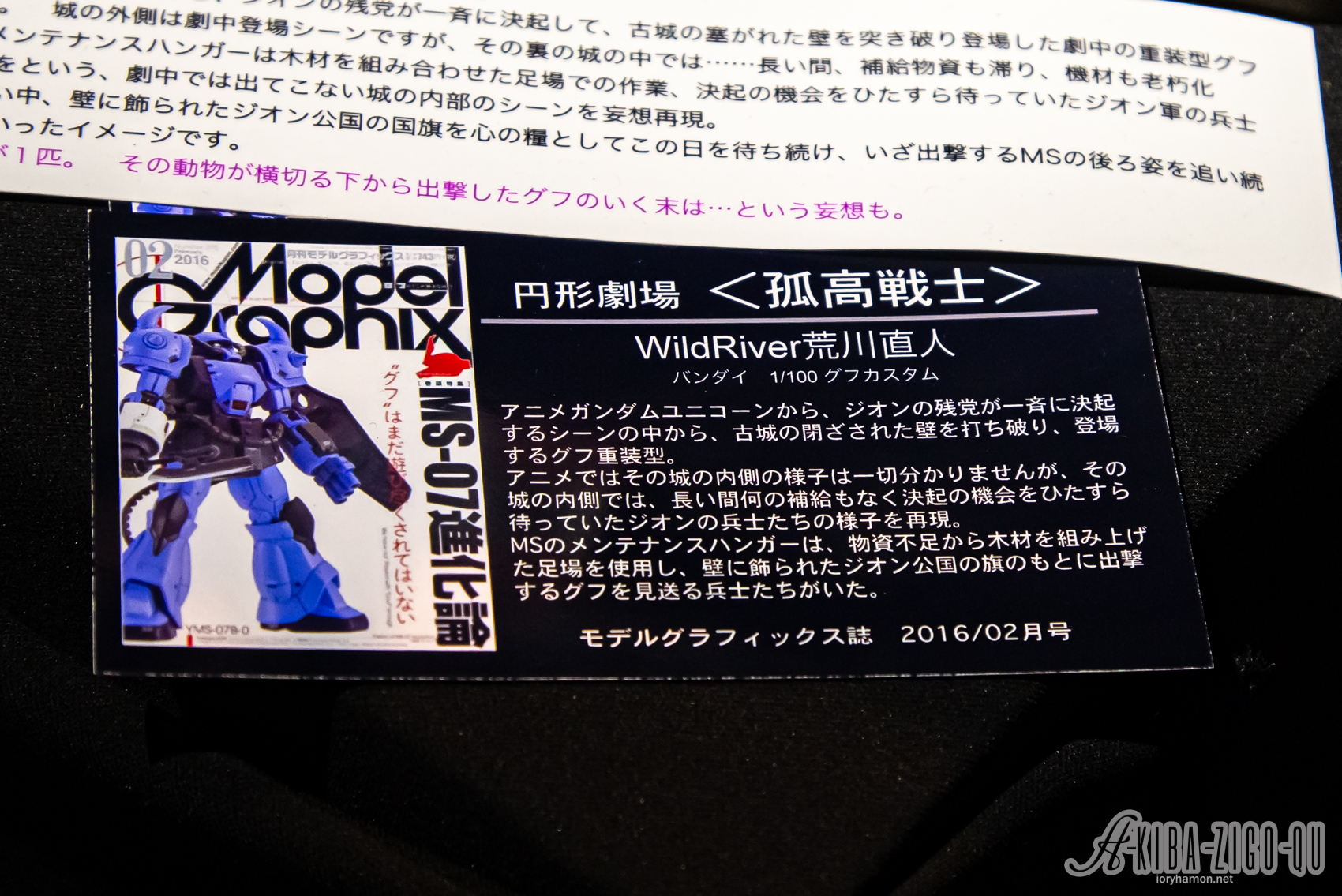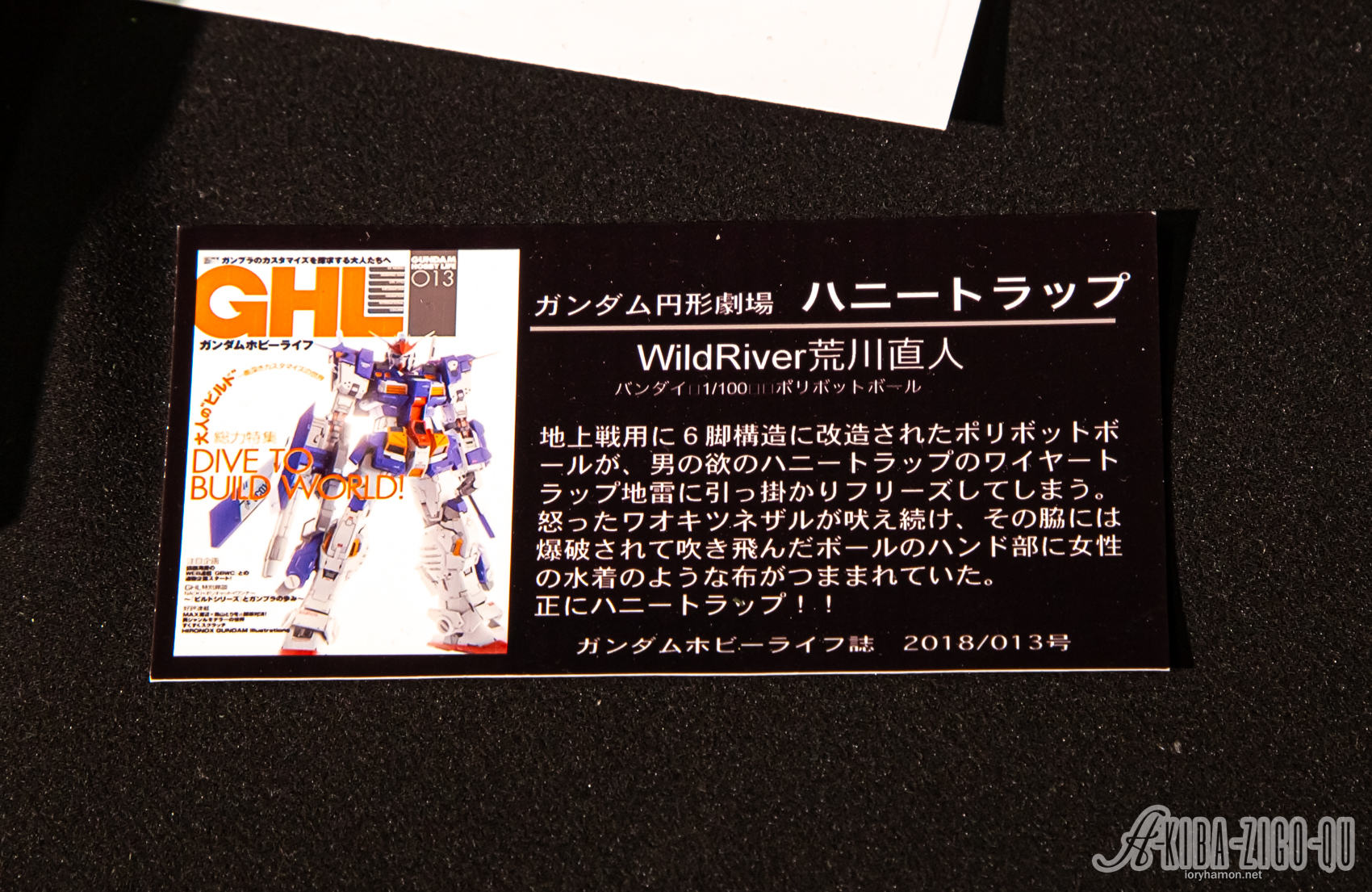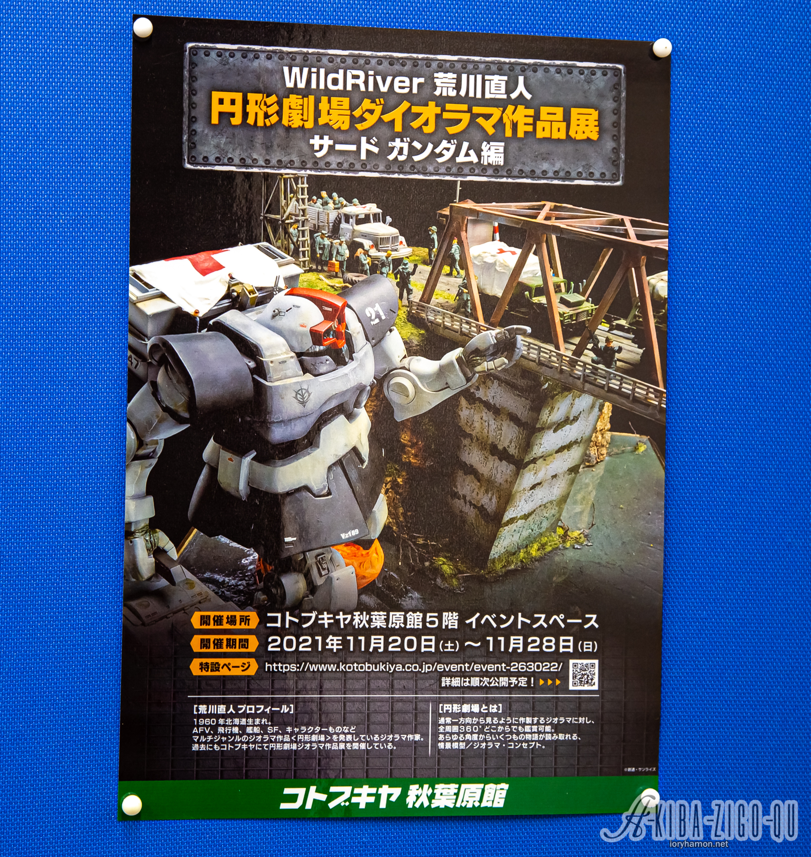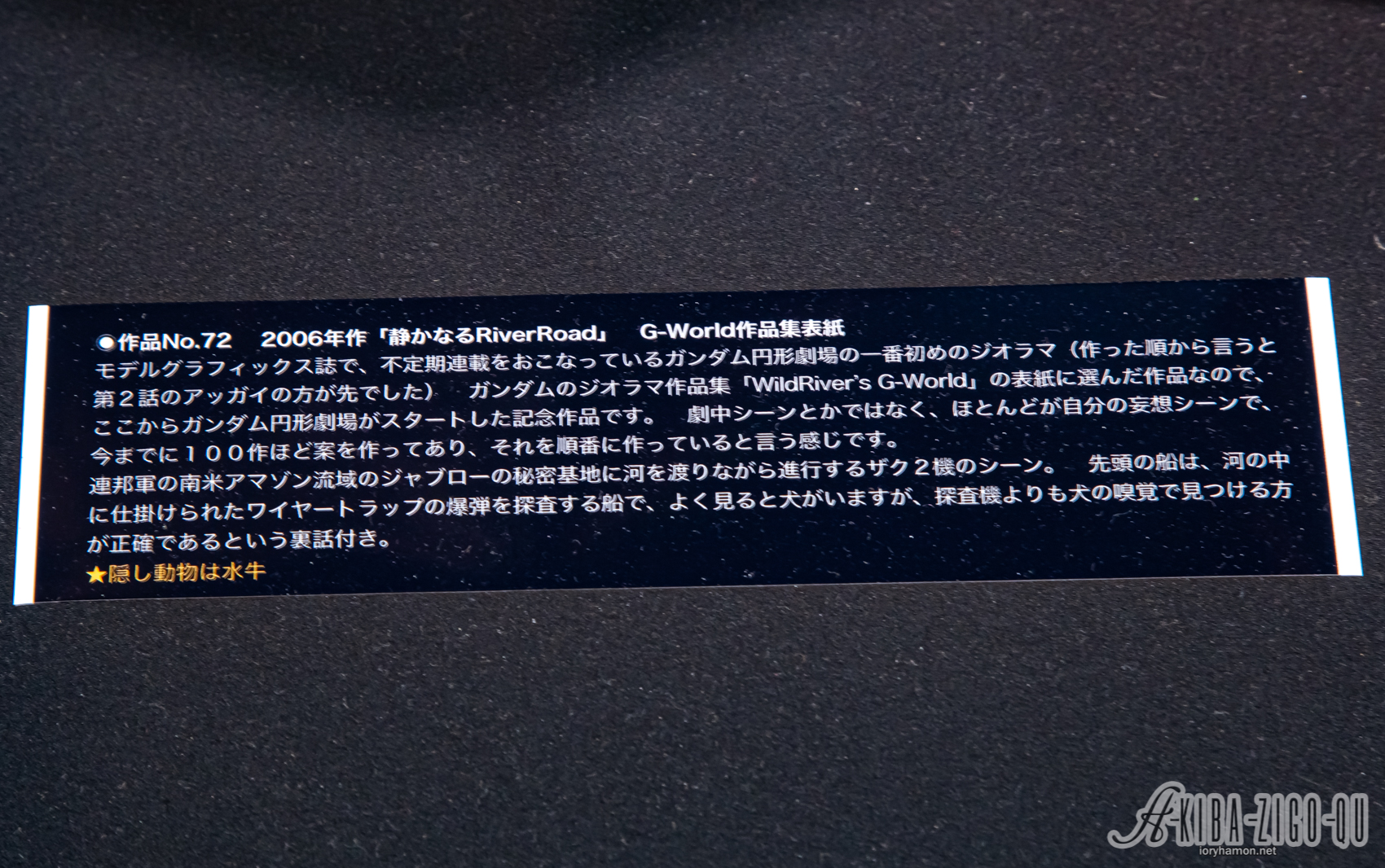 今回のイベントは新作書籍「WildRiver's G-WORLD 2nd: 『円形劇場』演出師 WildRiver荒川直人 ガンダム情景作品集2」に掲載されるジオラマの一部が会場内に展示されるというもの。